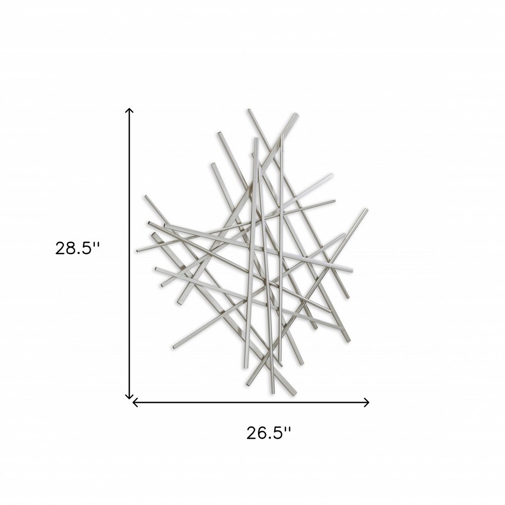 Liven up your walls with our stunning silver steel wall decor. This modern piece effortlessly combines abstract and geometric elements, bringing a touch of up-to-date fashion to your home. Crafted from high-quality steel, it adds both color and dimension to any space. Designed for vertical orientation, this stylish art piece is the perfect decorative accessory to enhance your walls. Its sleek silver finish complements a variety of interior styles, making it a versatile addition to your home decor collection. 28.5-inch H x 26.5-inch W x 1.25-inch D
